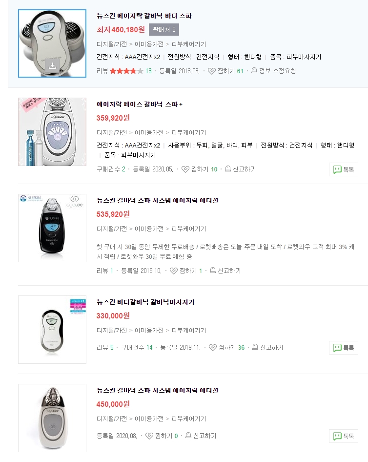 뉴스킨갈바닉가격과 일반갈바닉 비교